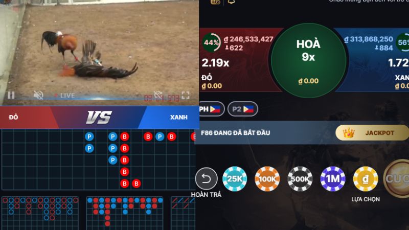 - Trận đấu truyền hình trực tiếp chất lượng Full HD, mang lại cảm giác chân thực như đang có mặt tại sới gà.